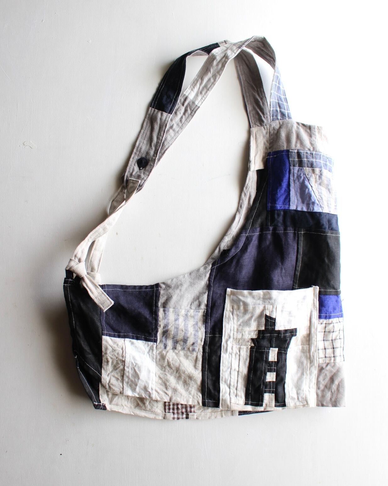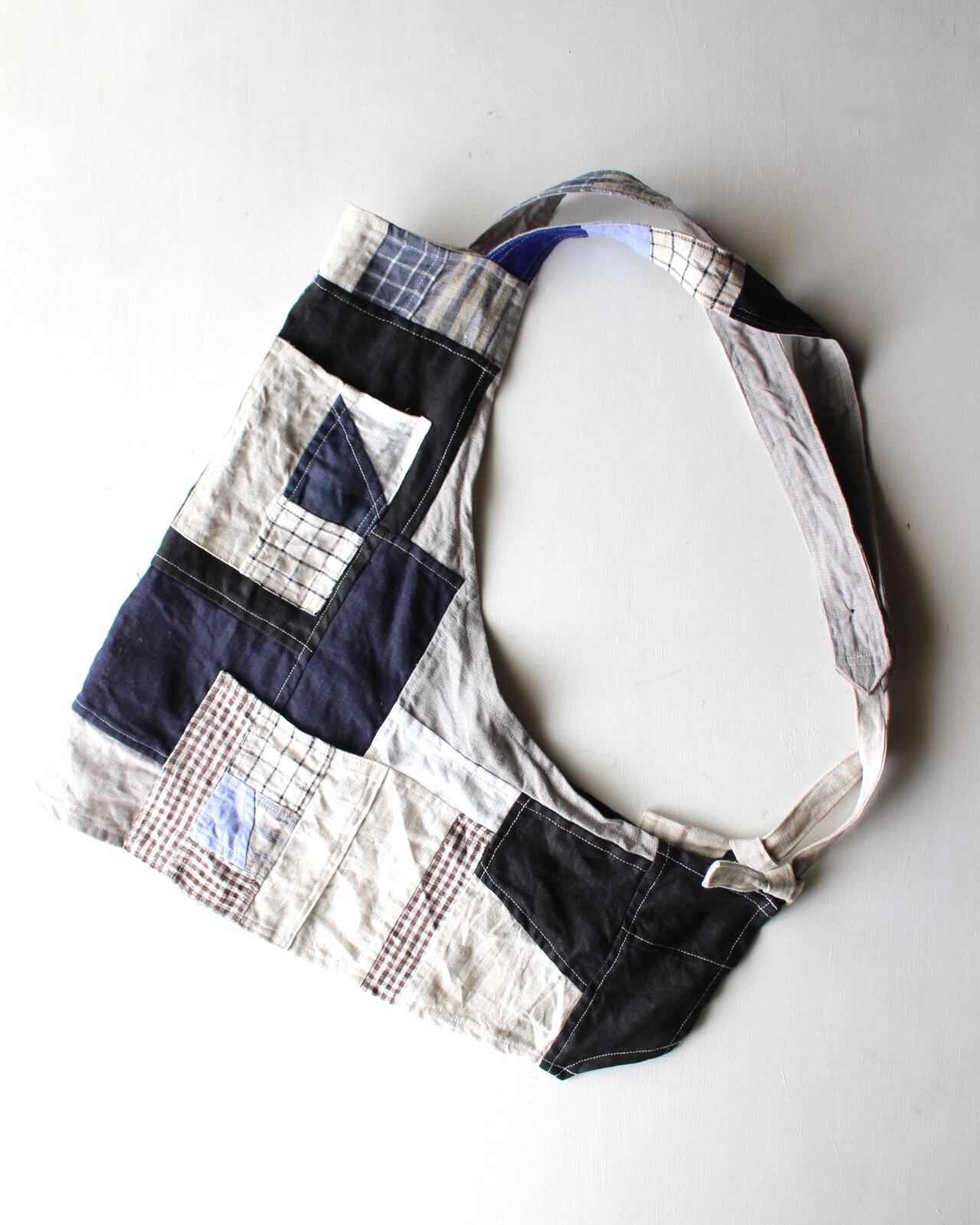 "漕ぎ出す" POJAGI LINEN100% SHORT PUT APRON c/#BK