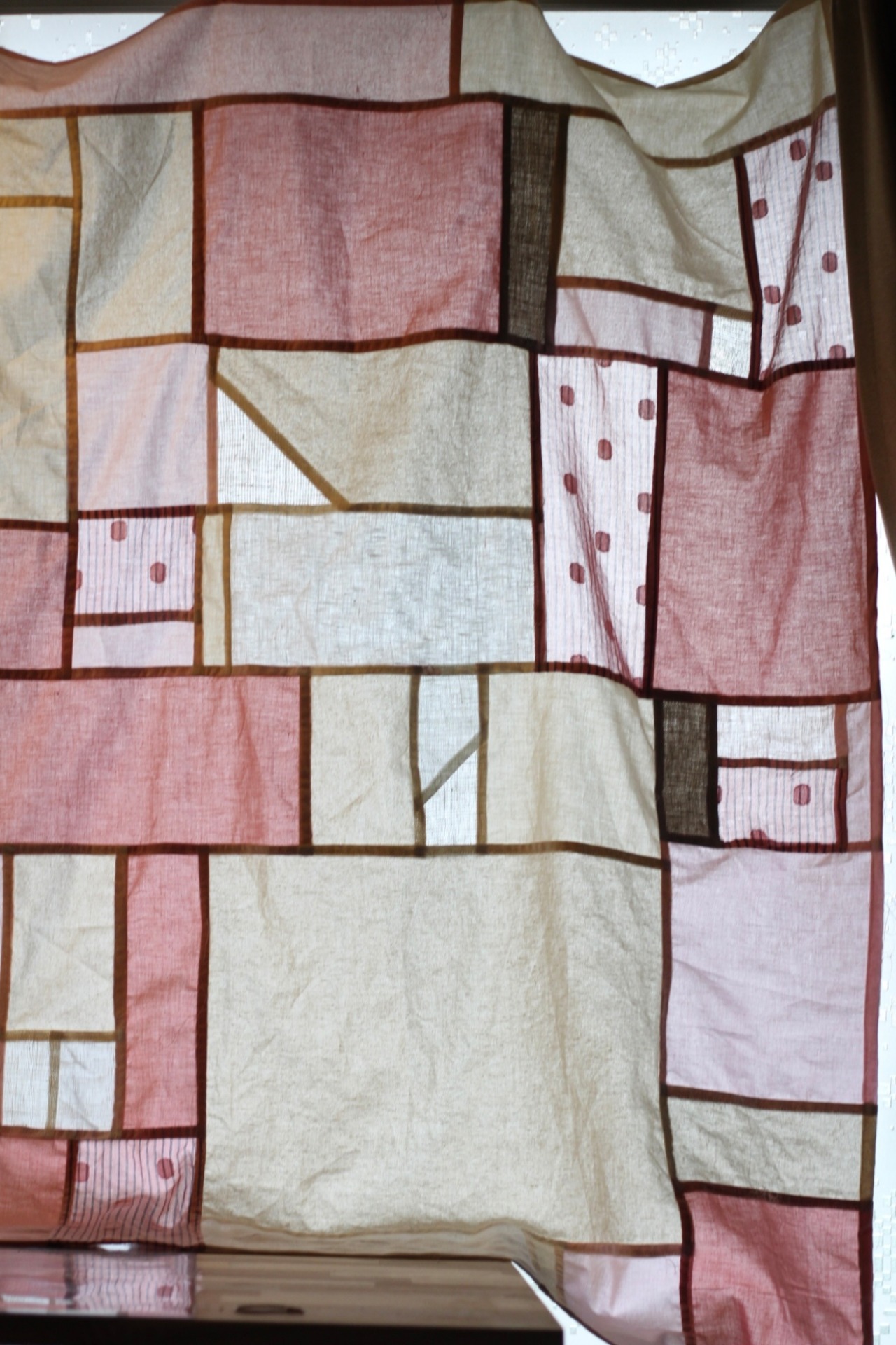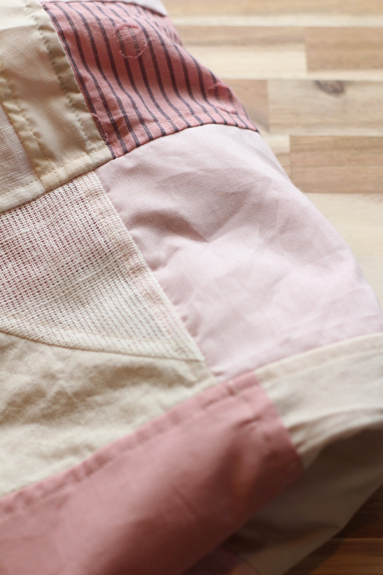 コットン、リネンのはぎれを組み合わせています。