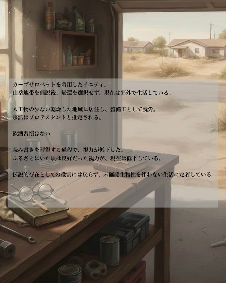 伝説的存在としての役割には戻らず、未確認生物性を伴わない生活に定着している。