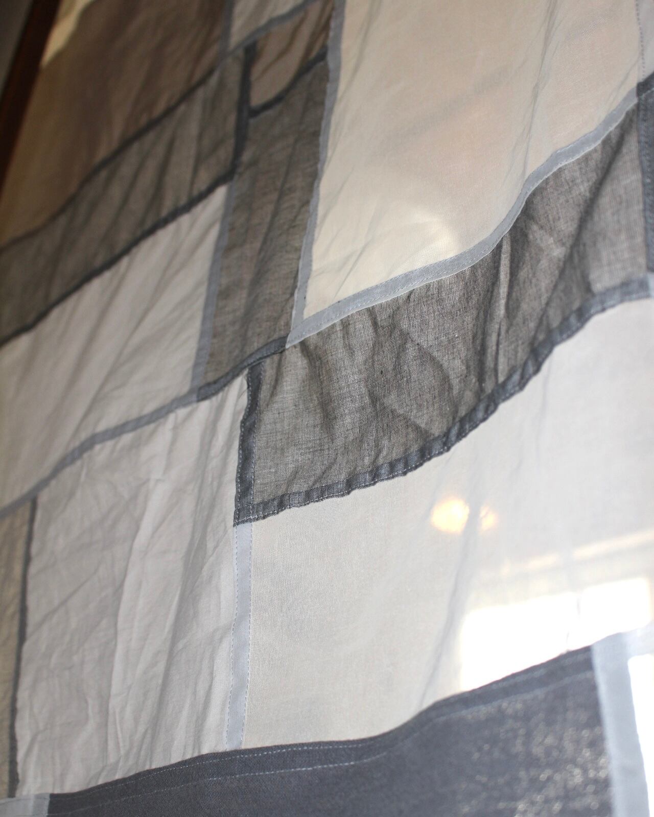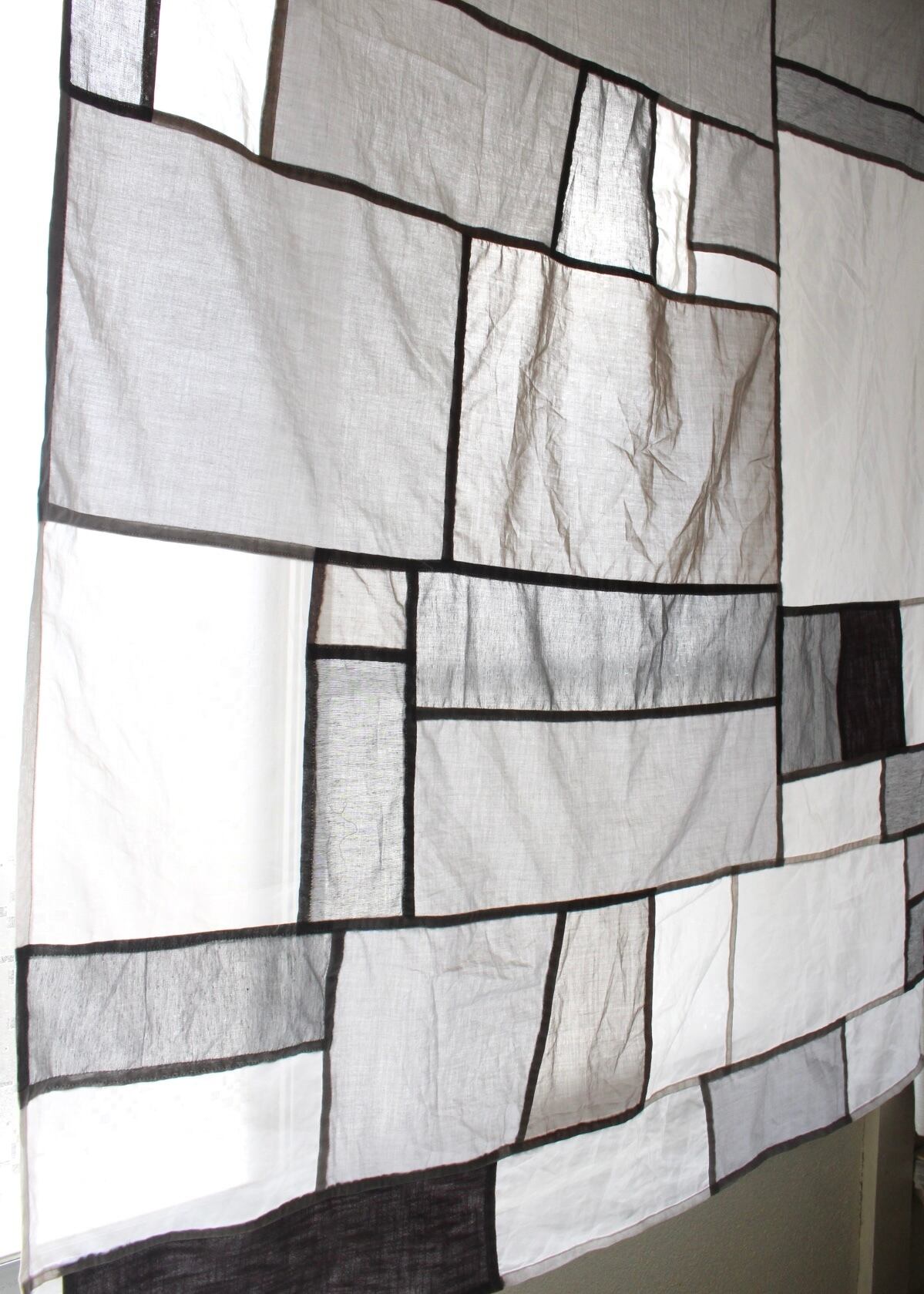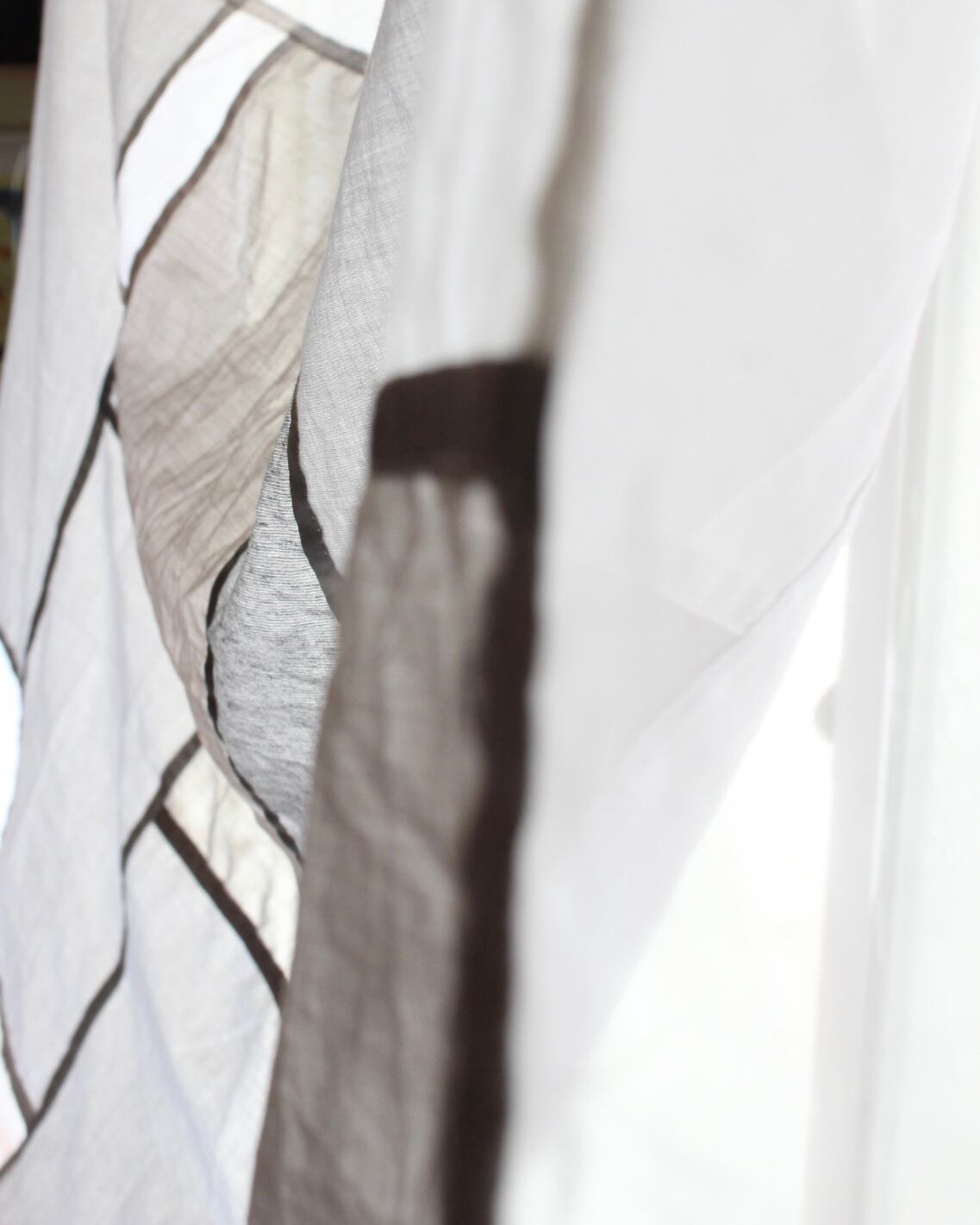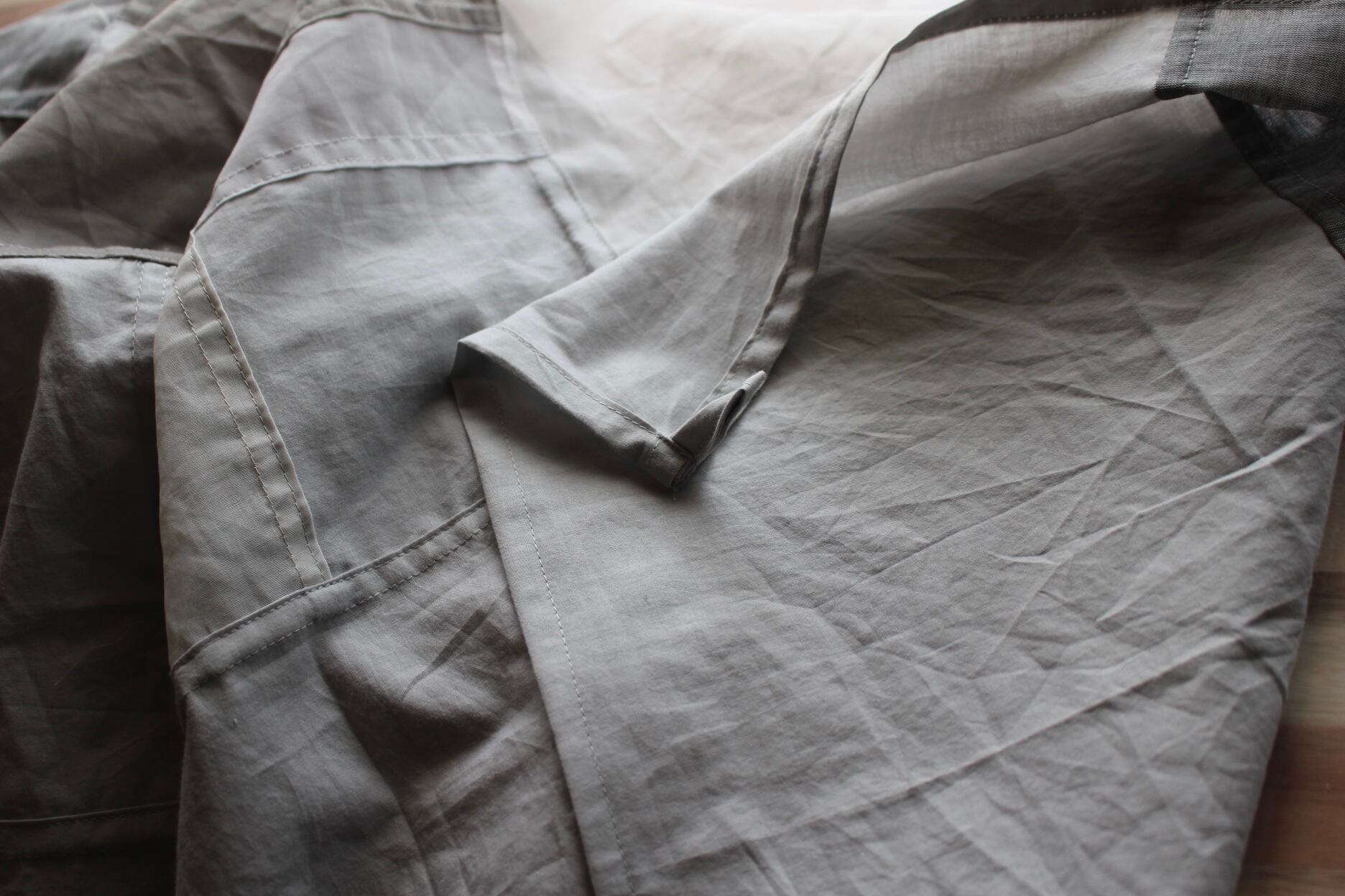 オーガンジー、薄手の綿、厚めリネンのピースを組み合わせています。