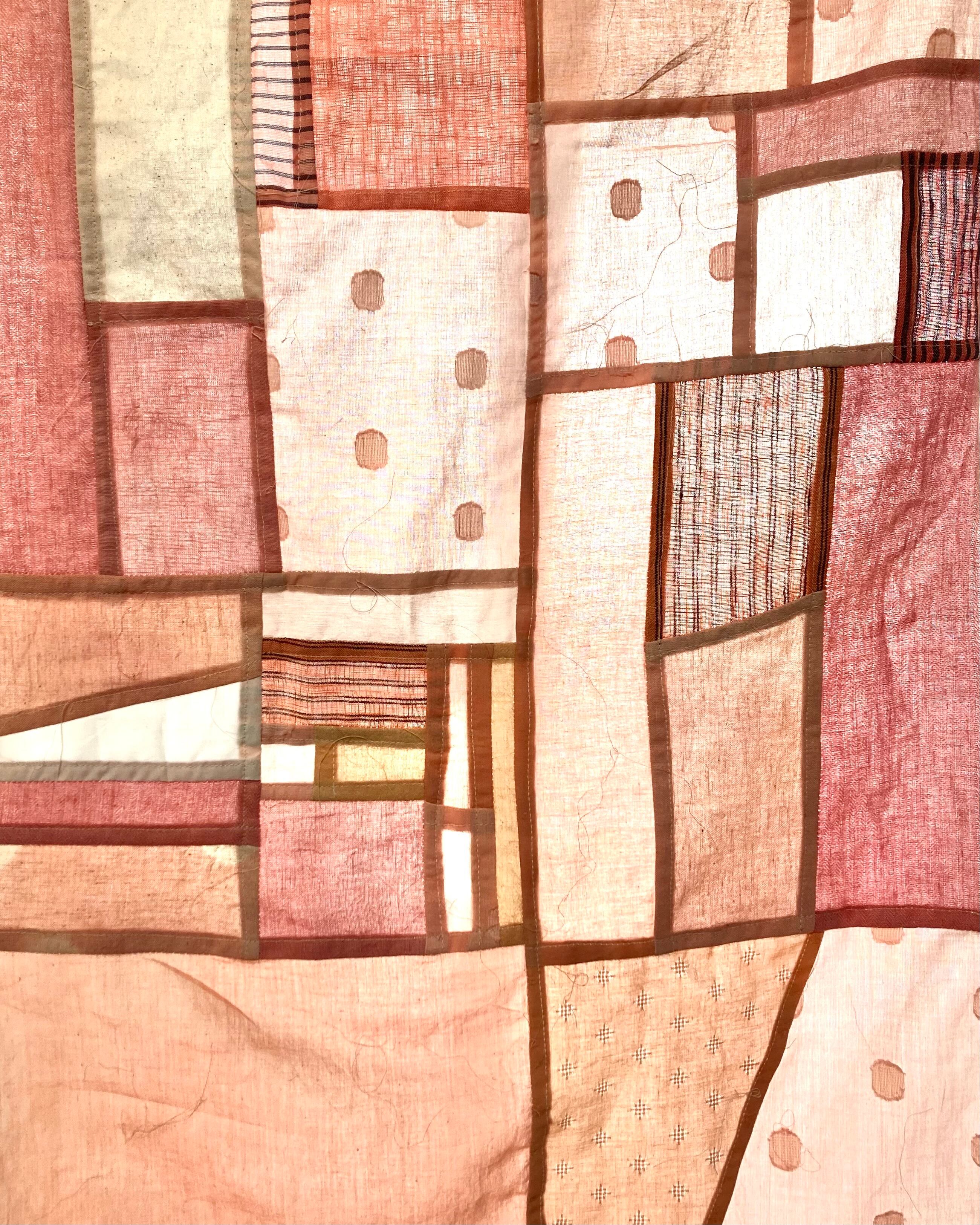 主にリネンと綿シフォンを組み合わせています。ドットジャガードの入った布を多用しました。細かいピースを繋ぎ合わせた1点もの作品です。