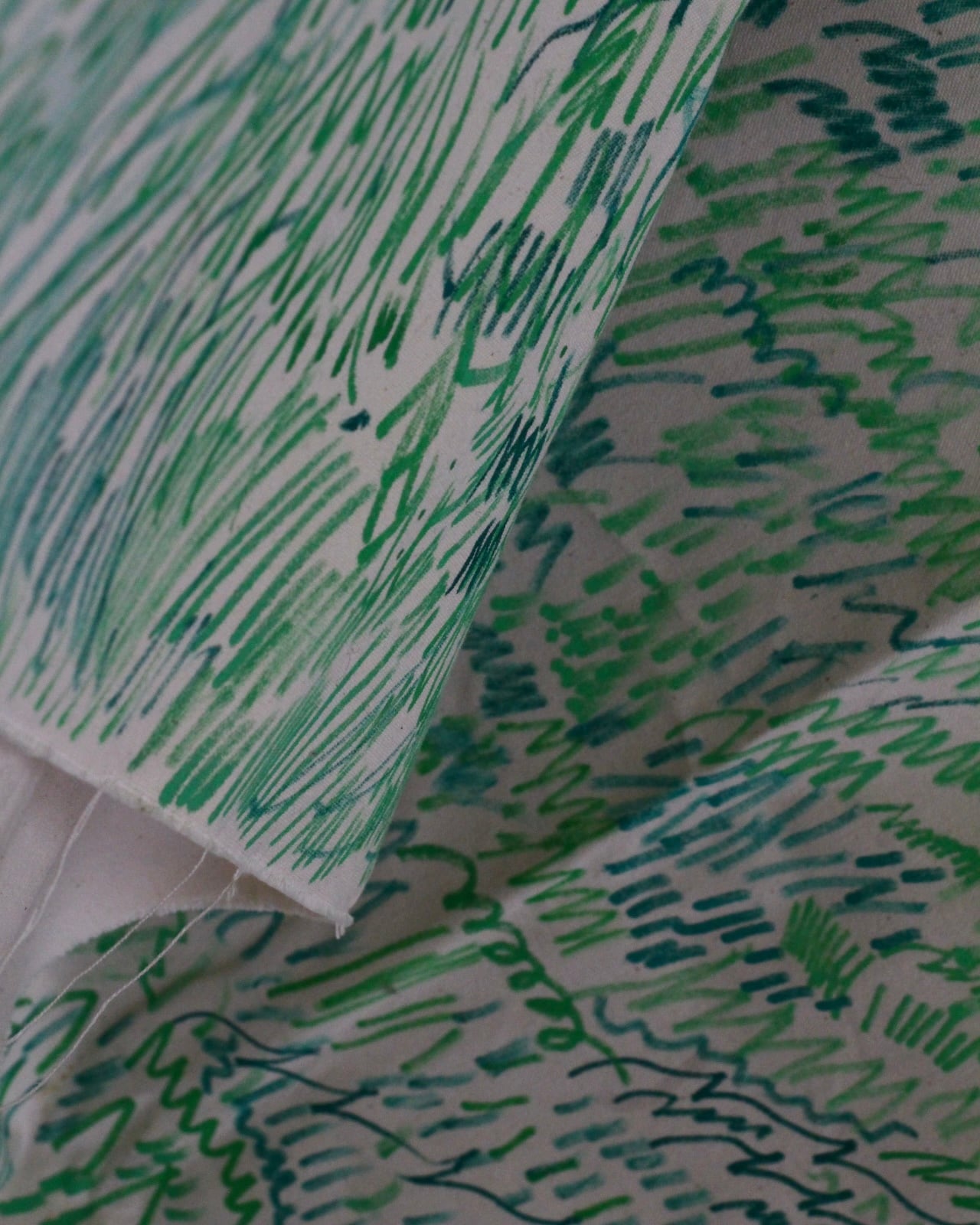 布描きペンで、MMMMADE辻岡が丘を描き、余白をはんぶんほど残した状態でギャラリーに置いておく。