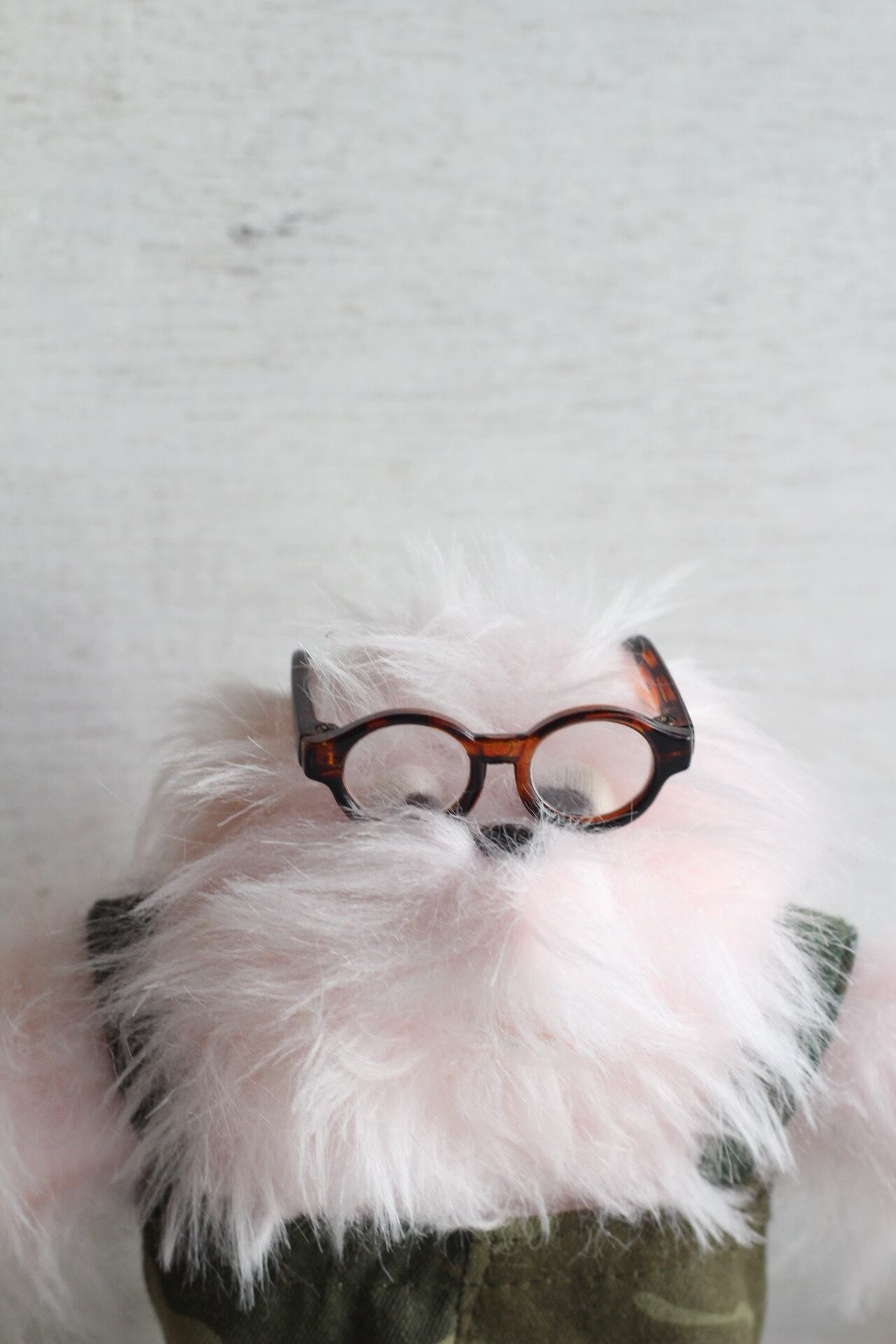 付属 着脱可能迷彩柄サロペット、セルロイドメガネ