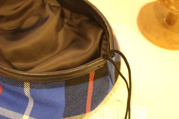 被り口にサイズ調節のパイピングを牛革であしらいました。