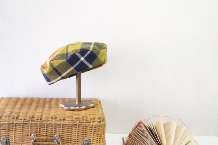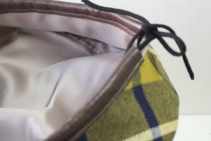 被り口にサイズ調節のパイピングを牛革であしらいました。