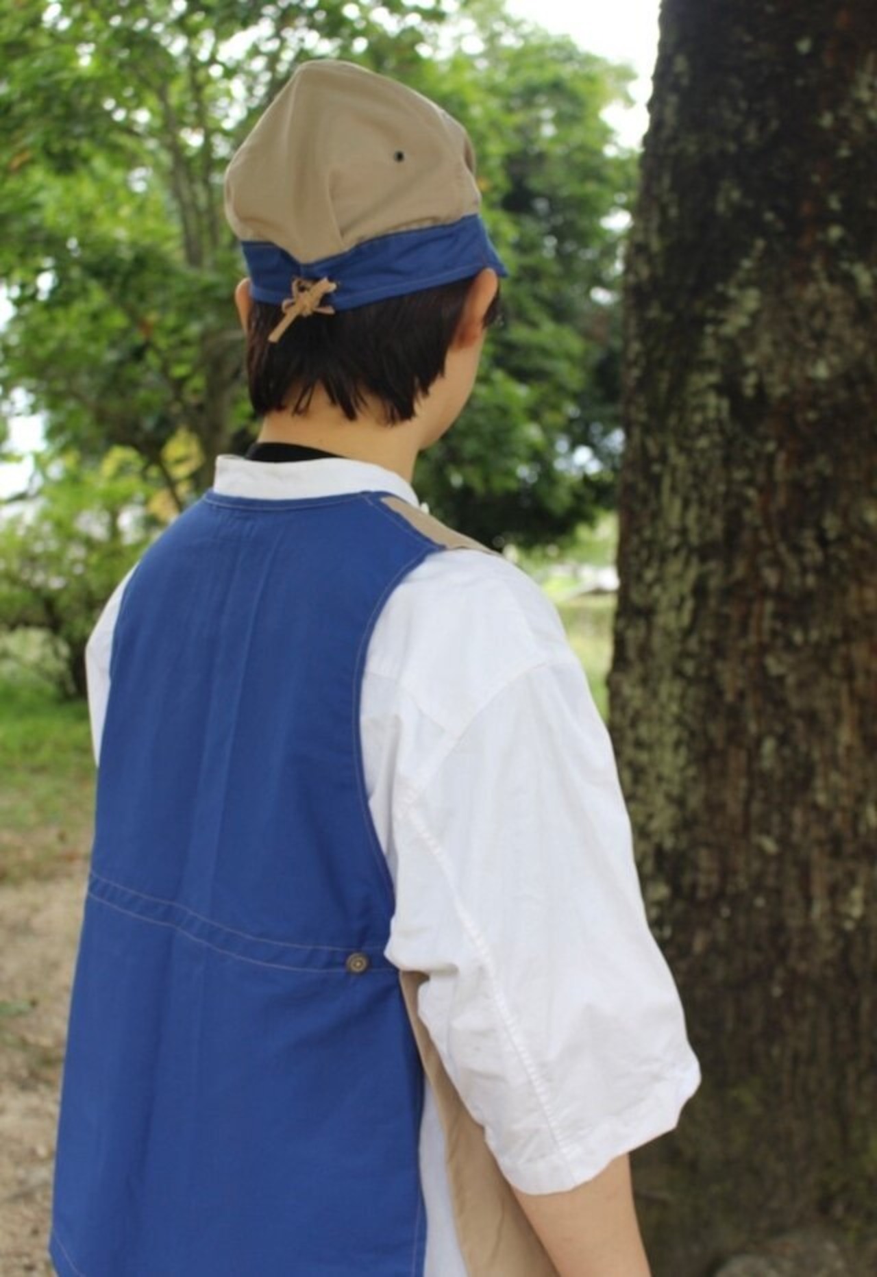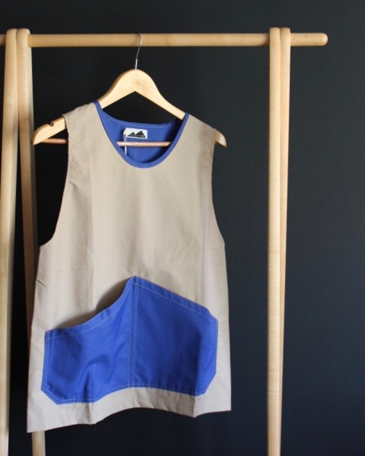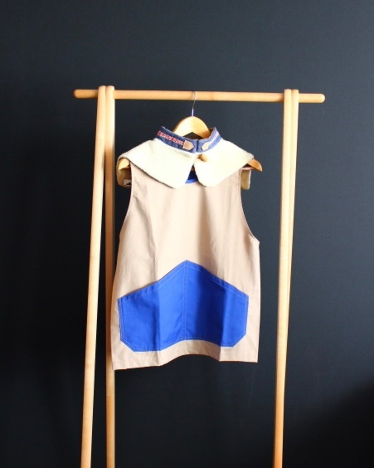 かぶりタイプ、綿ナイロンの配色エプロンベスト。