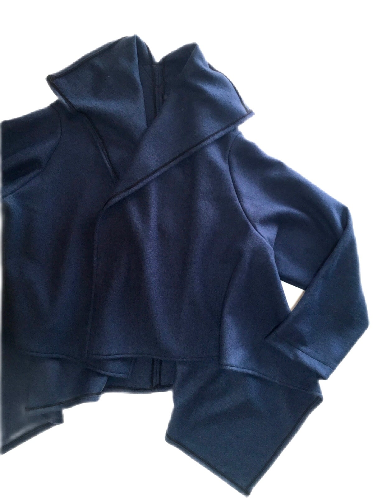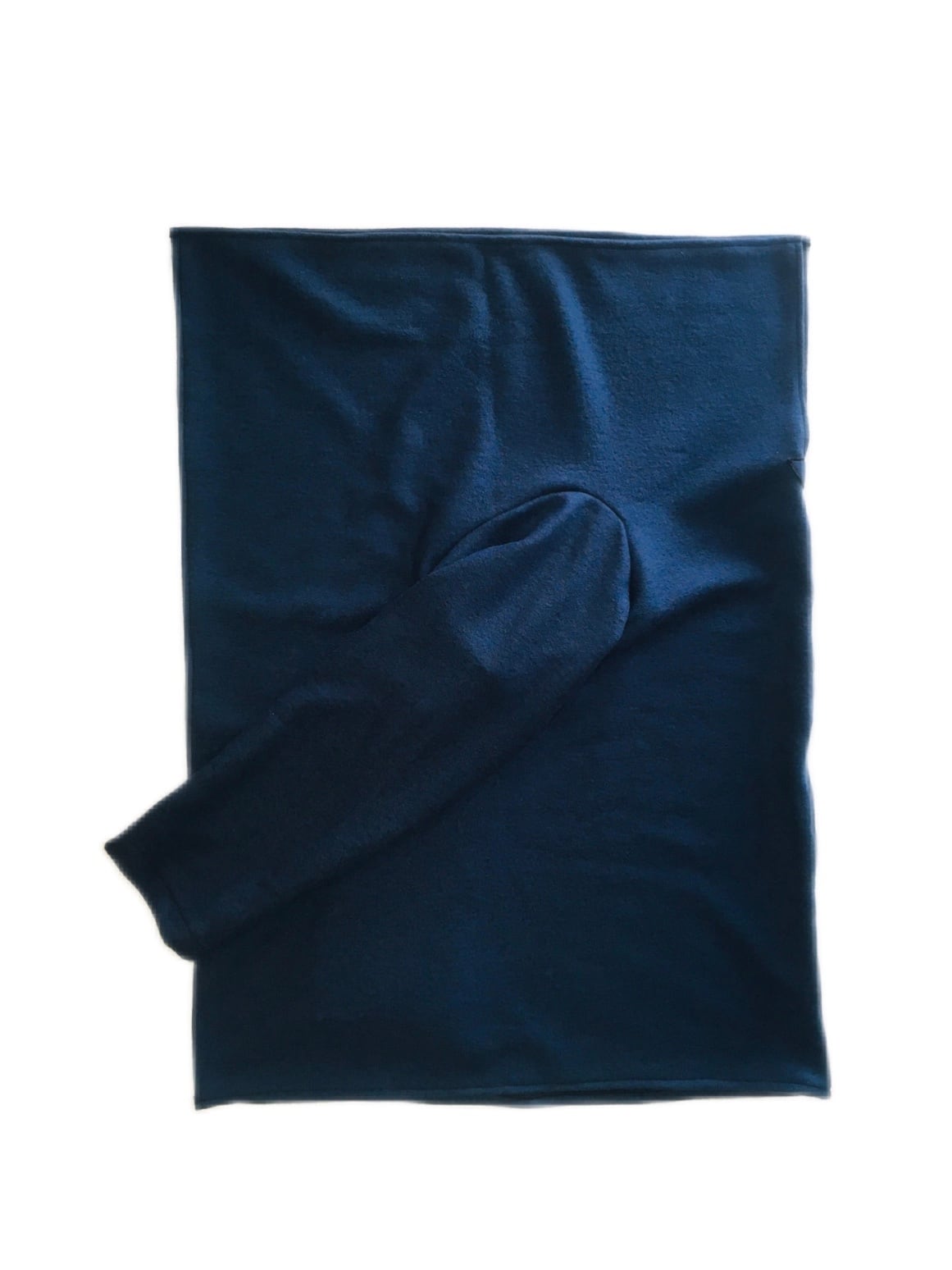軽く柔らかい素材です、ウールのニットを縮絨させた、伸びるフェルトのような質感
