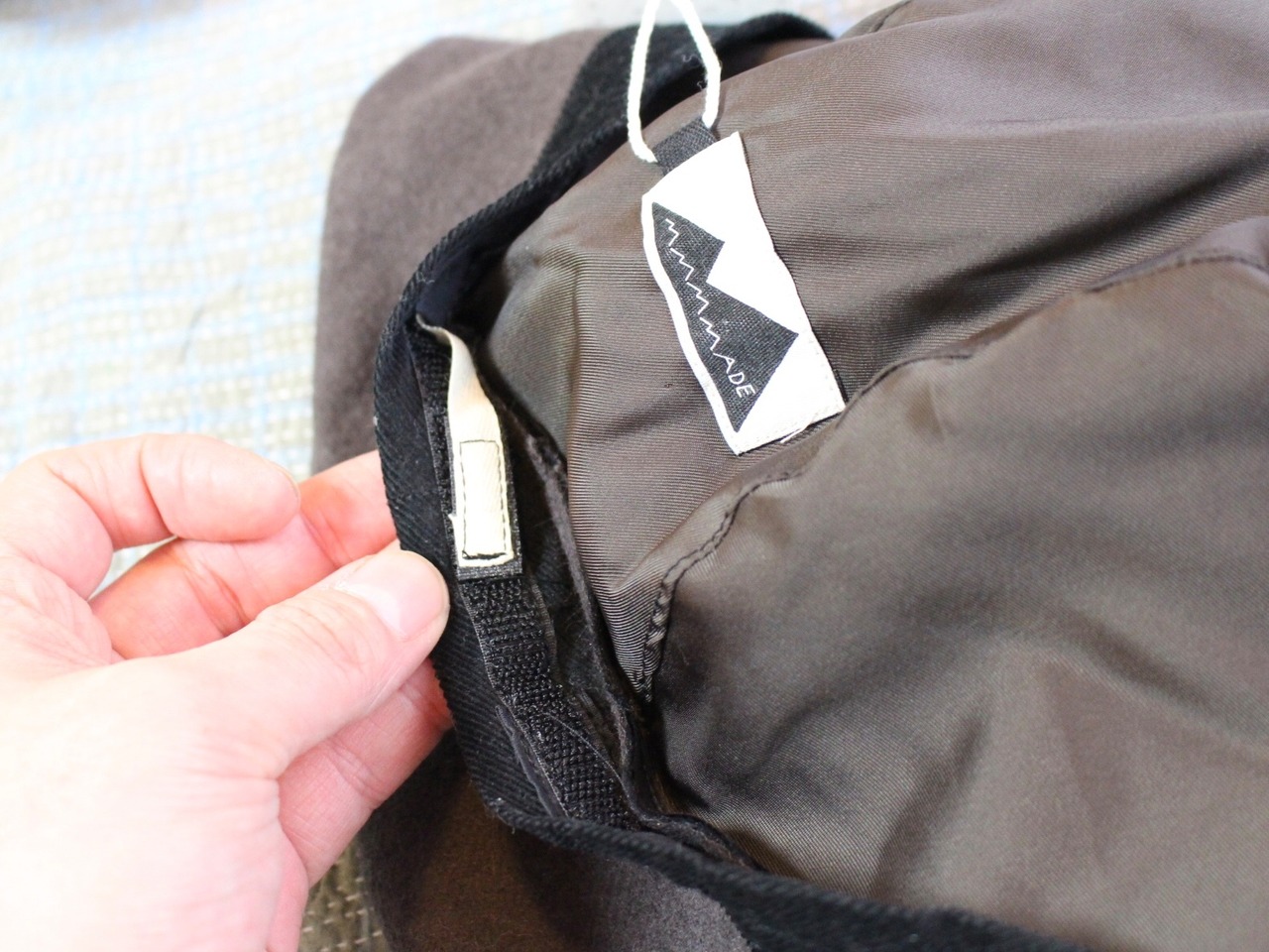 マジックテープ+紐の部分を縮めてサイズ調節ができます
