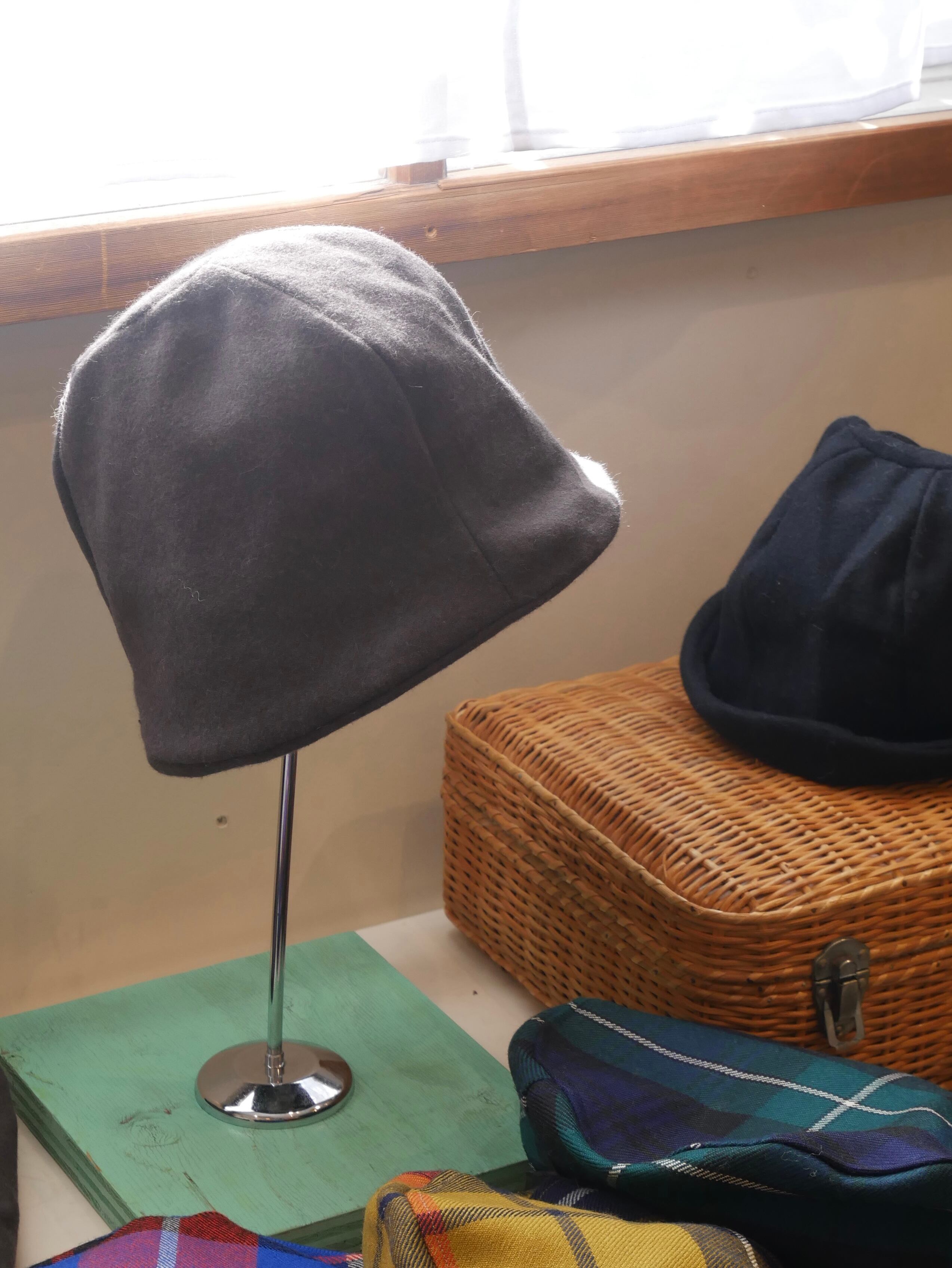ワッチキャップのように折り返すと幅狭のつばができるデザイン。MMM MADEオリジナルパターンHELMA(ヘルマ)