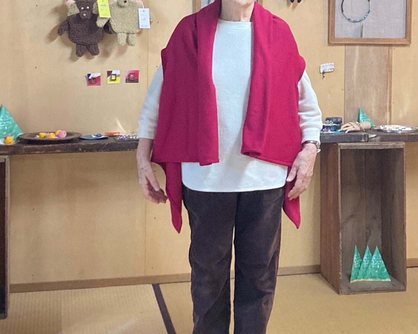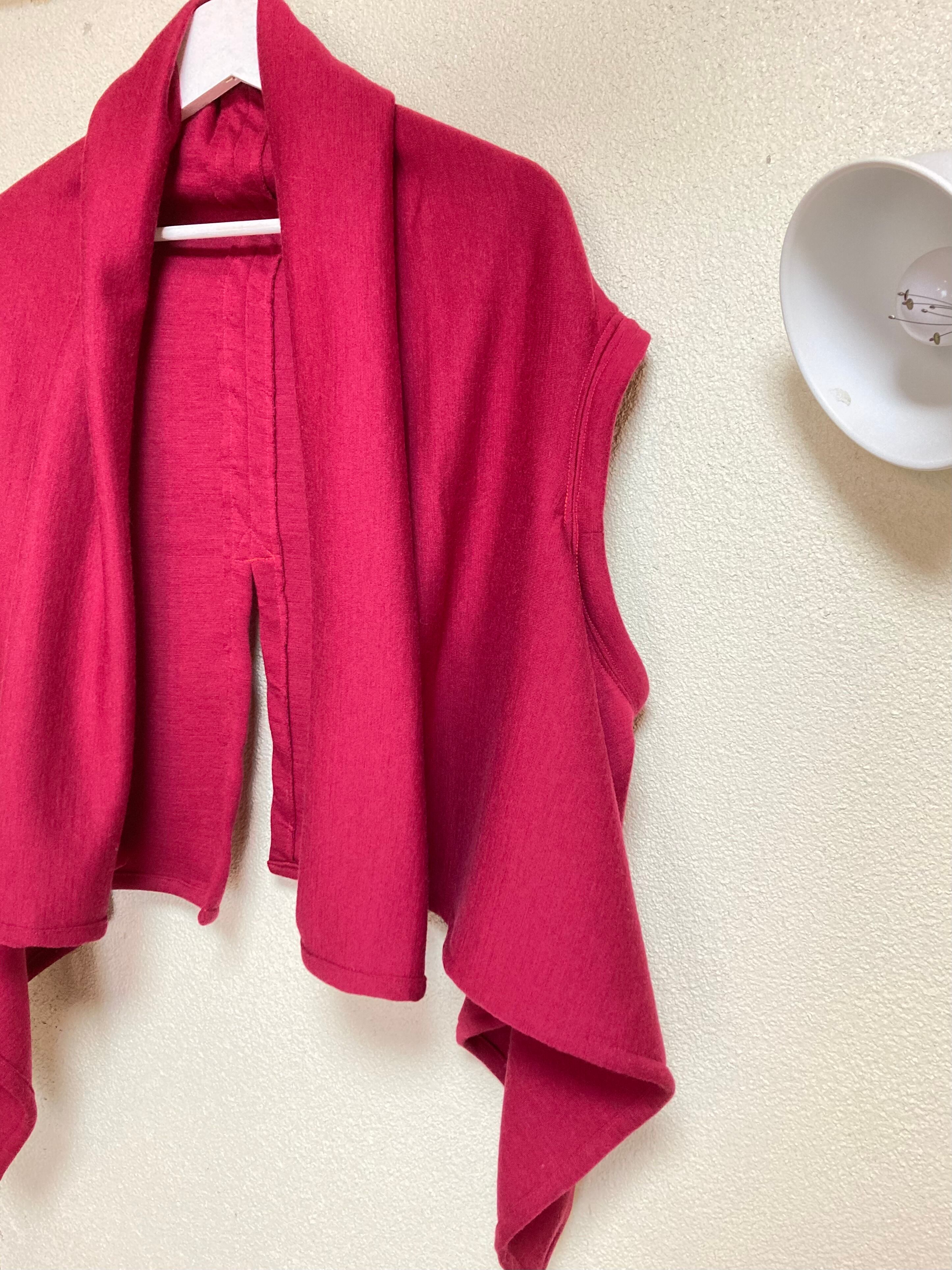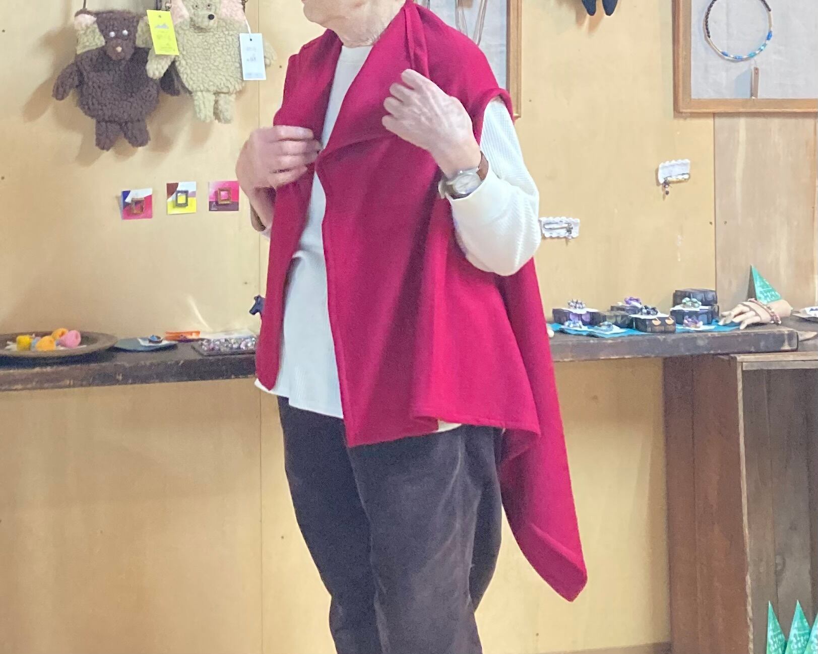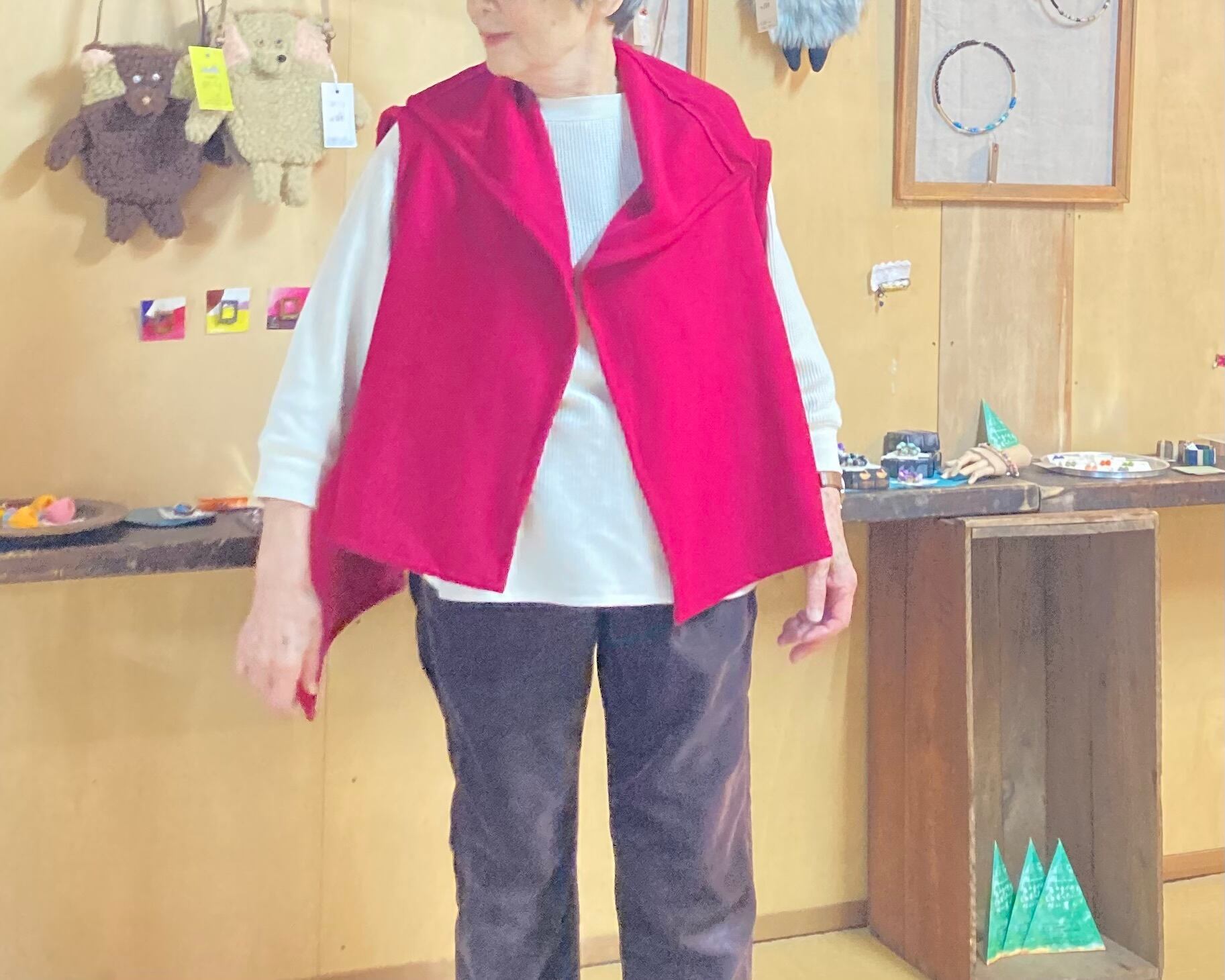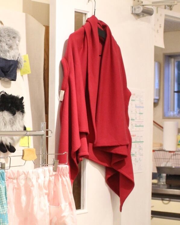MMM MADEの秋冬衣料品、上下逆さ両方向着用可能なベスト、袖口の穴に片側を通すと首巻きにもできます