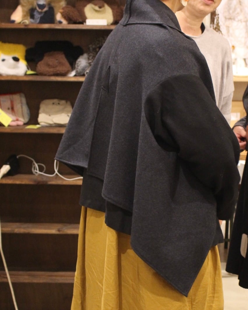 逆さに着れるカーディガン 圧縮ウール c/#チャコールブラックバイカラー